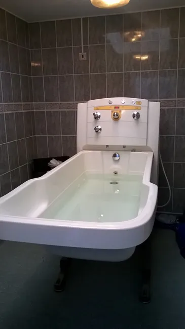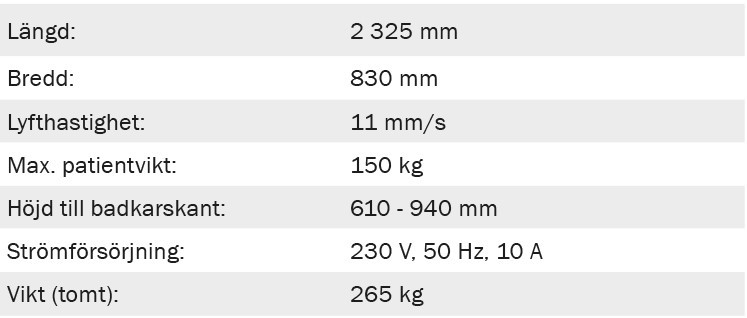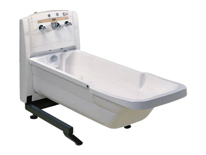Höj- och sänkbart badkar. Ger vårdgivaren en ergonomisk och bekväm arbetsställning som minskar risken för ryggskador.